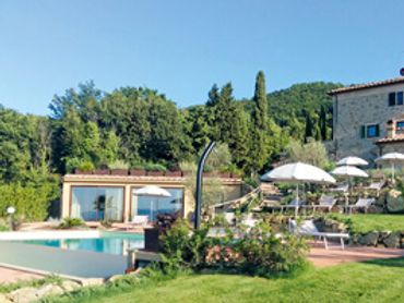 Das Panorama Resort Lucerna ist ein besonderer Rückzugsort in traumhafter Lage in der Toskana. Hügelige Landschaften, Infinity Pool, Panoramasauna, Olivengarten, Relaxroom mit Kamin und ein moderner Yogaraum.